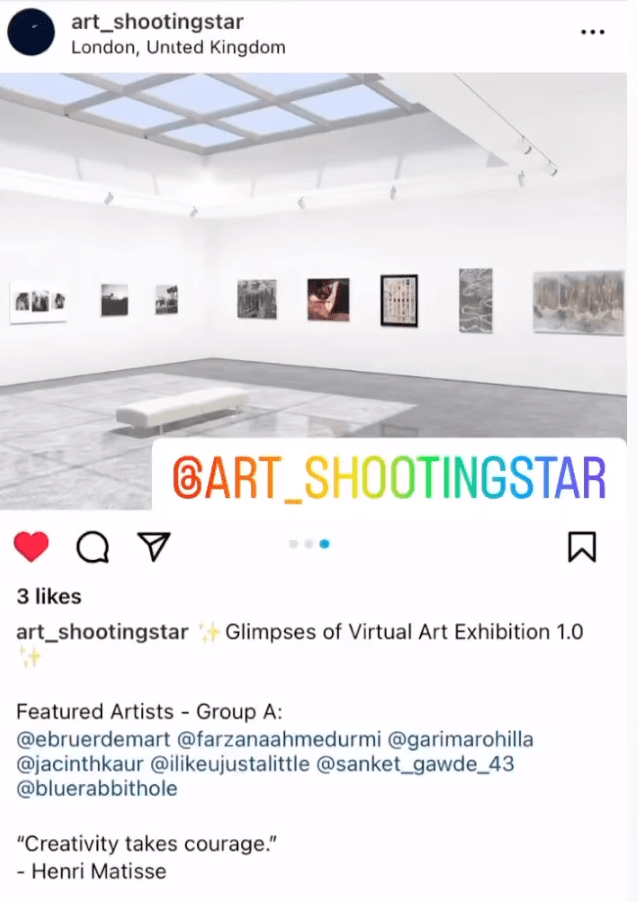 - Exhibited artworks as part of Virtual Art Exhibition 1.0 | Shooting Star Studios, February 2023